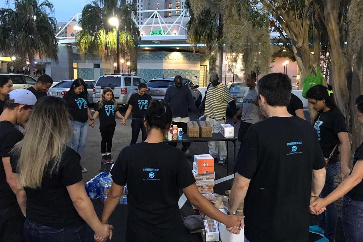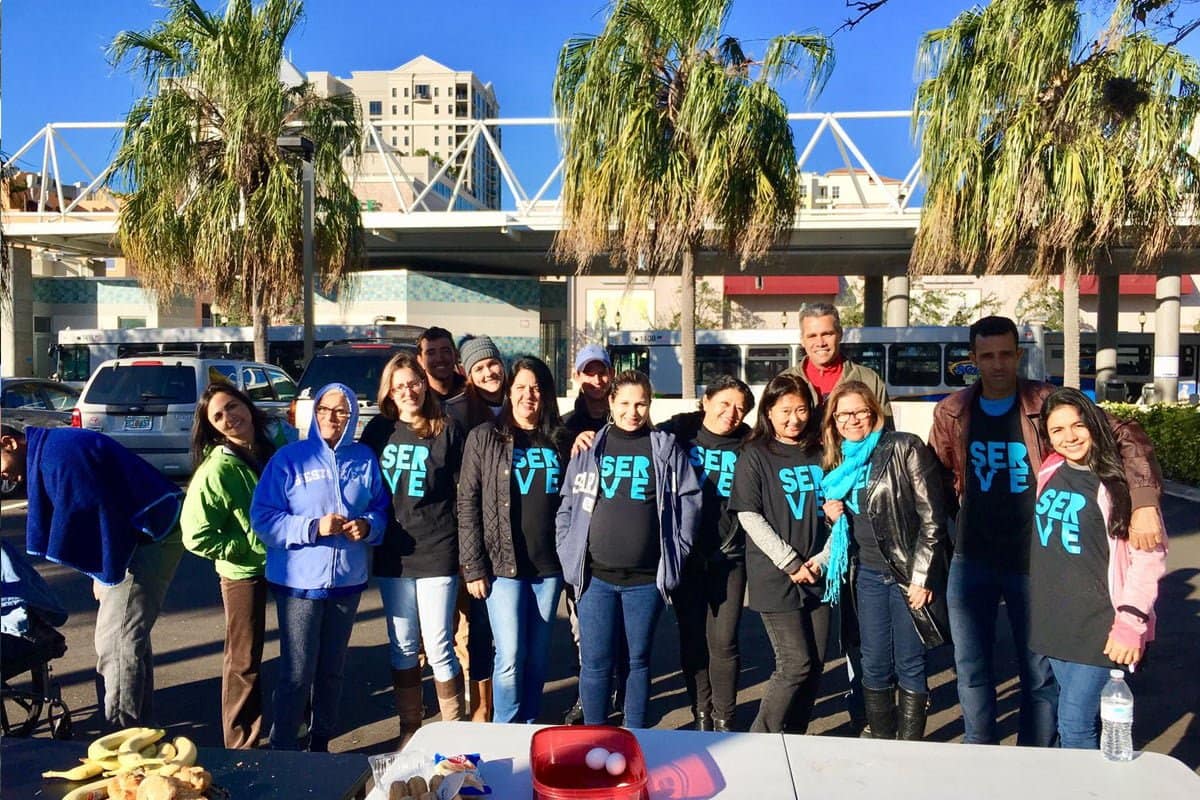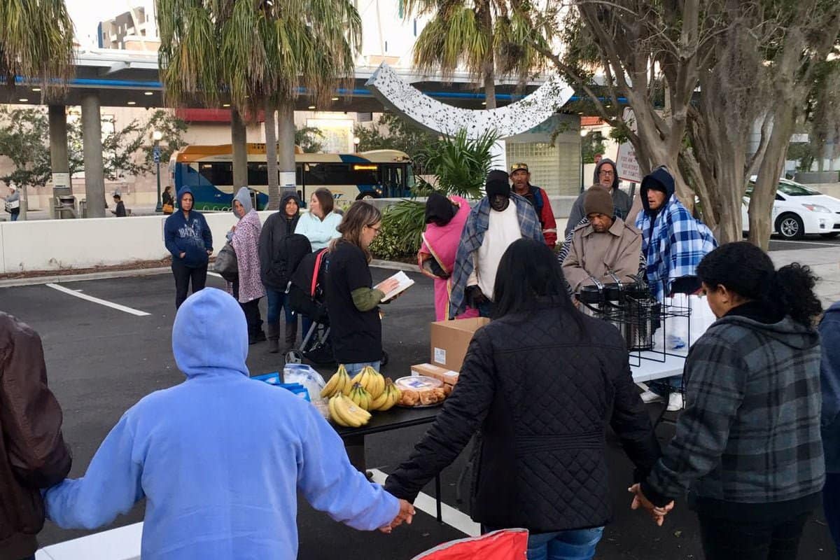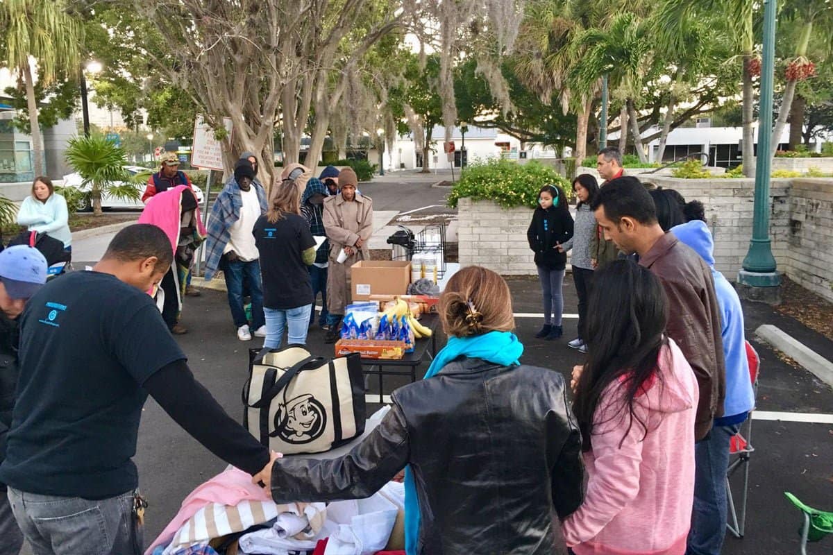 Todo segundo domingo do mês servimos café da manhã para os moradores de rua no centro de Sarasota.